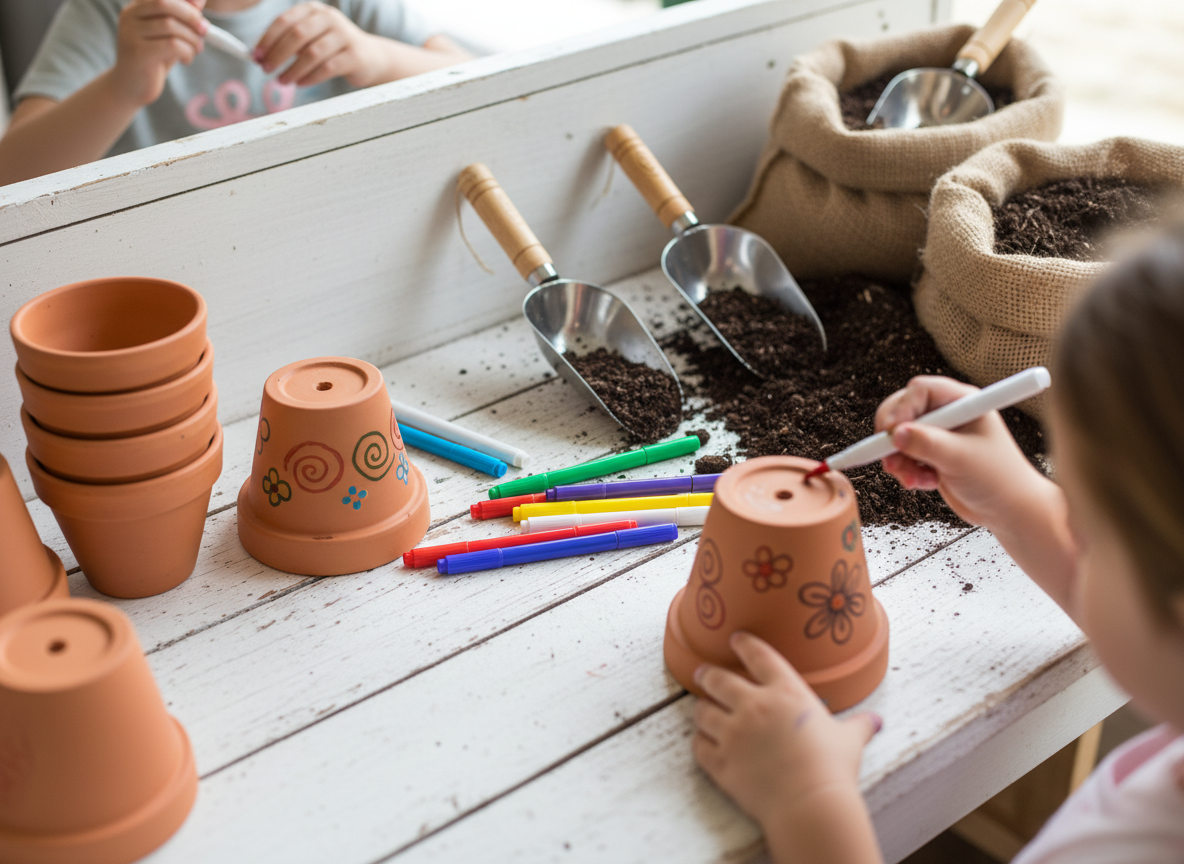 - Plant-a-Pot: Buy small terracotta pots and let the kids decorate them with paint markers or stickers. Then, help them plant easy-to-grow seeds (like sunflowers or beans) or a small succulent. Bonus: This doubles as the party favor!